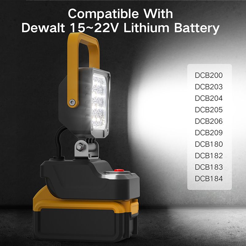 - Compatible Base Slot: This 4*4 LED work lights is in compatility with DEWALT 15V-22V lithium batteries, including models: DCB200, DCB203, DCB204, DCB205, DCB206, DCB209, DCB180, DCB182, DCB183 and DCB184.