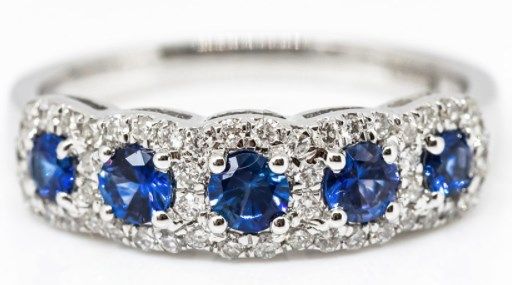 18ct White Gold, Sapphire & Diamond Five Stone Halo Ring