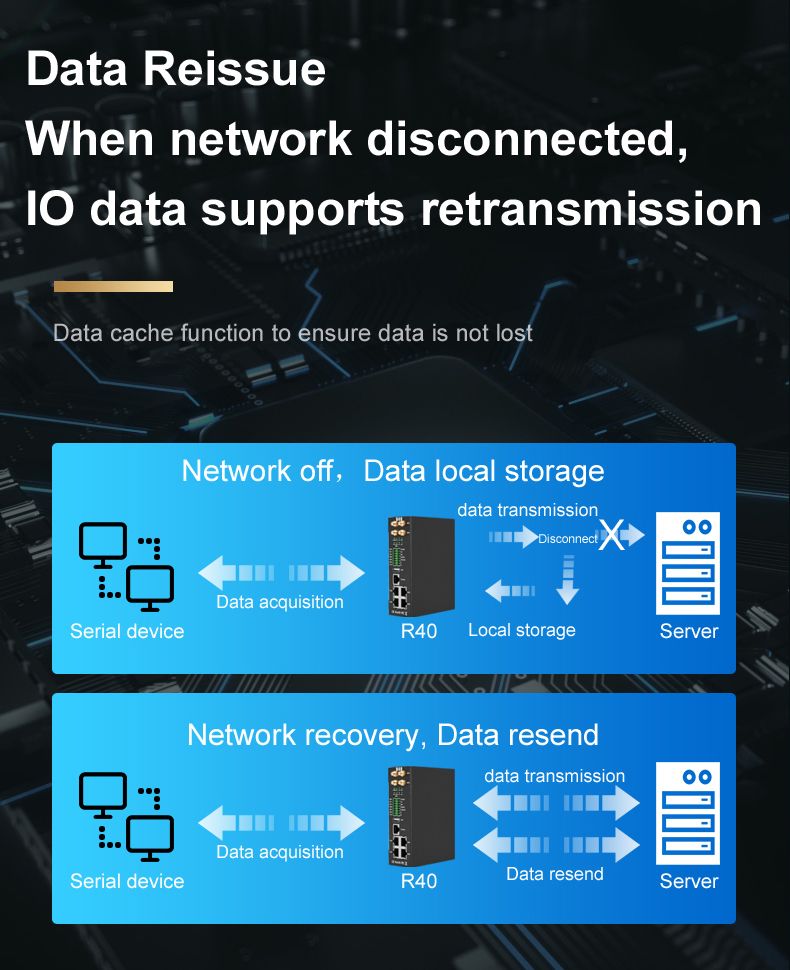 The R40 supports IPsec, OpenVPN, and L2TP VPNs, as well as protocols such as Modbus and MQTT with local computing capabilities using shell scripts, C, or Lua programming.