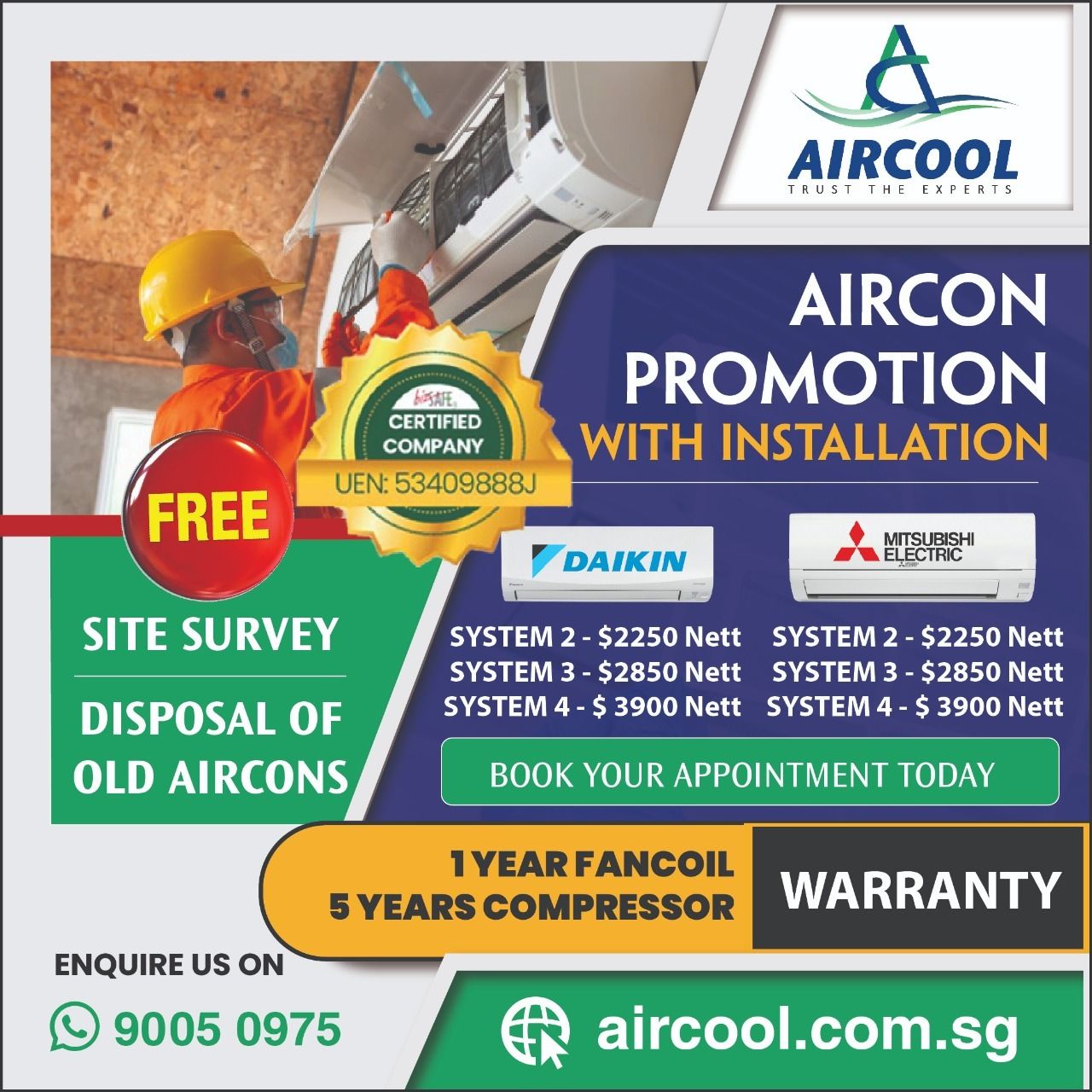 We offered and provide services that are Aircon service, Aircon installation, Aircon promotion in Singapore