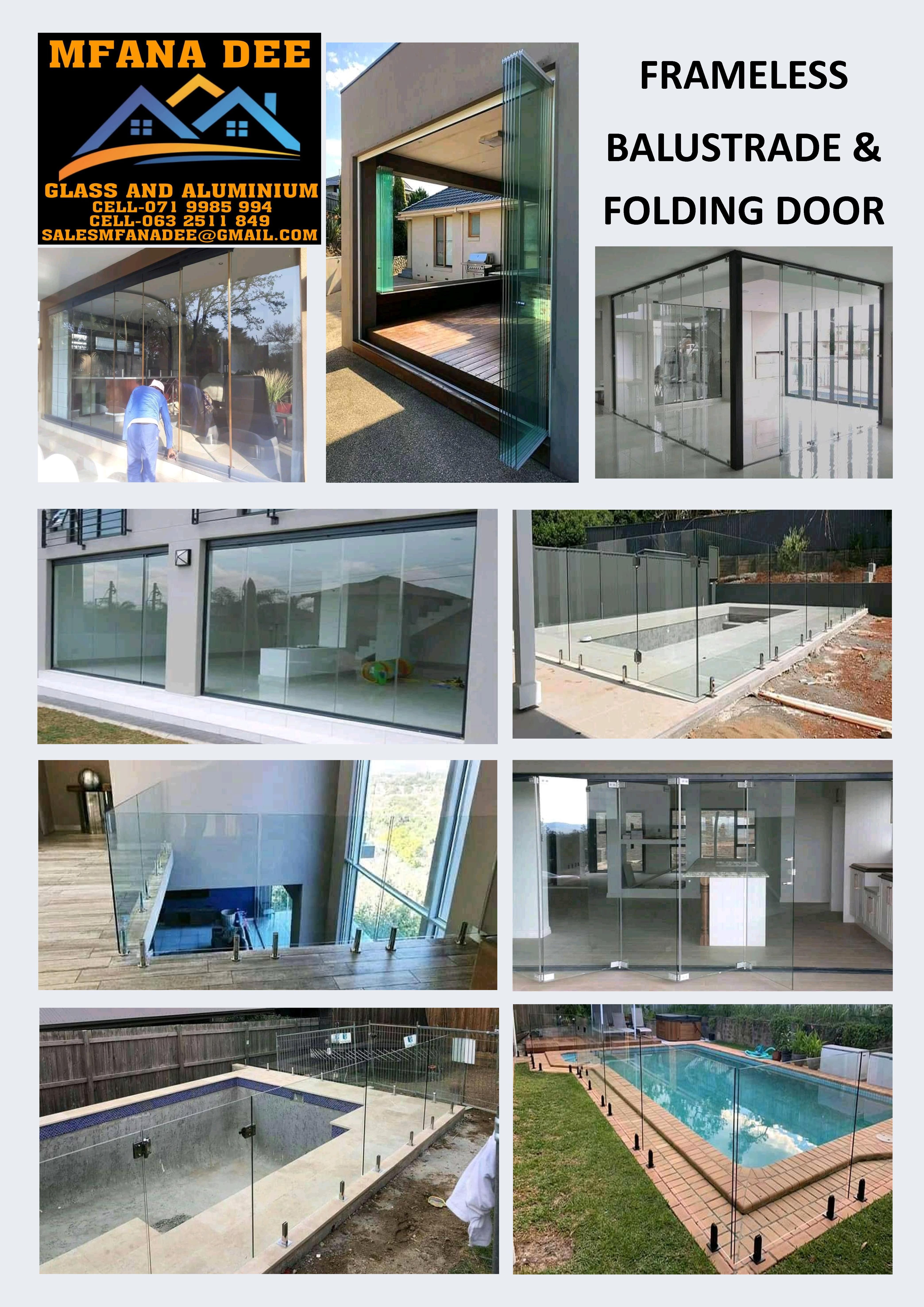 Aluminium windows, doors, frameless balustrade, frameless folding doors