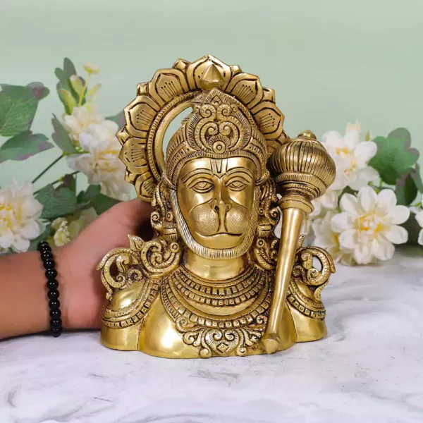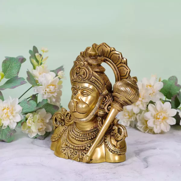 The Brass Hanuman Murti is a stunning masterpiece, this beautifully carved murti, which is crafted from premium brass and has a stunning gold finish, adds a sense of refinement to any area.