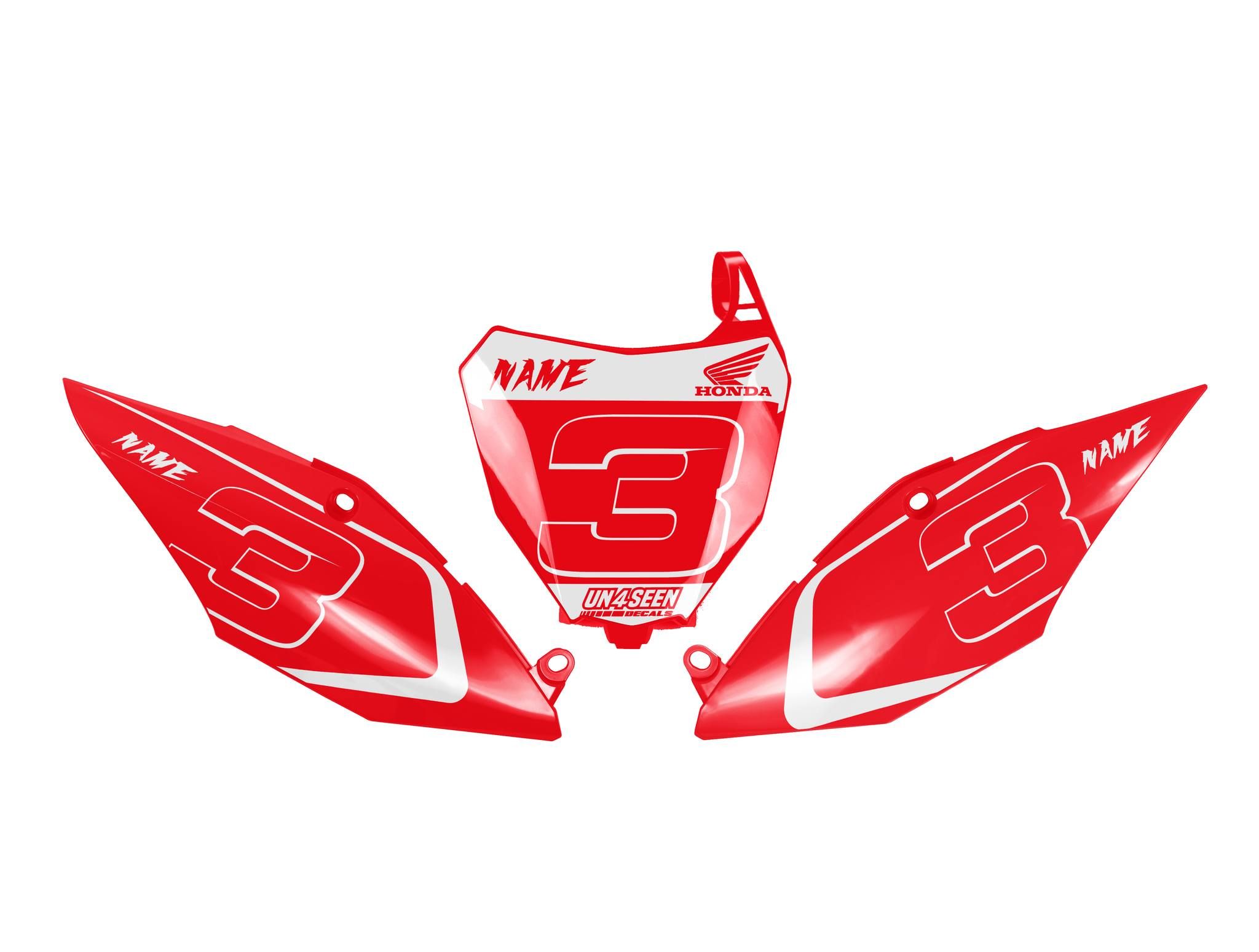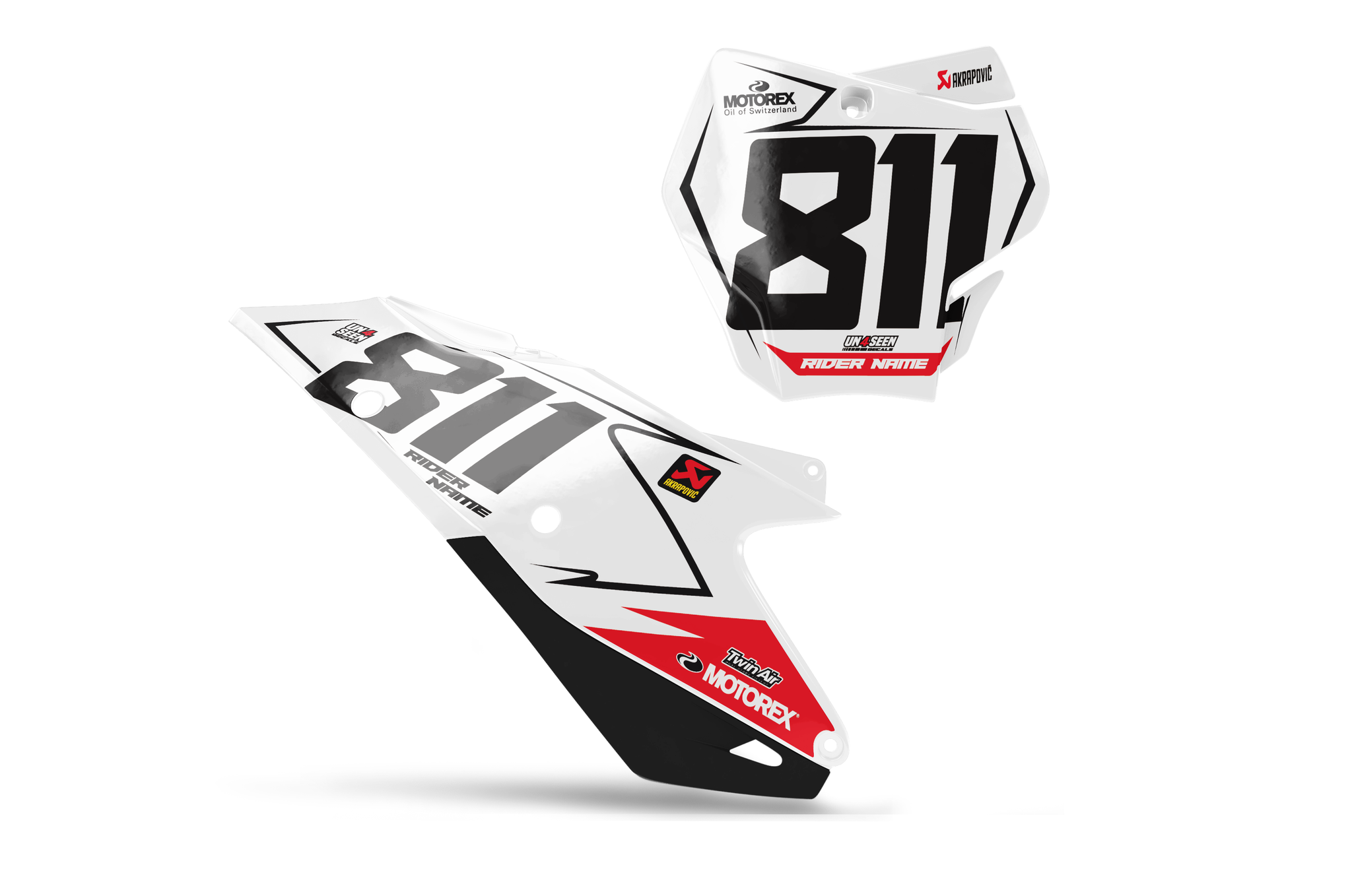 Our Number background decals are custom made to order, these cover the 3 number panel areas of the bike.