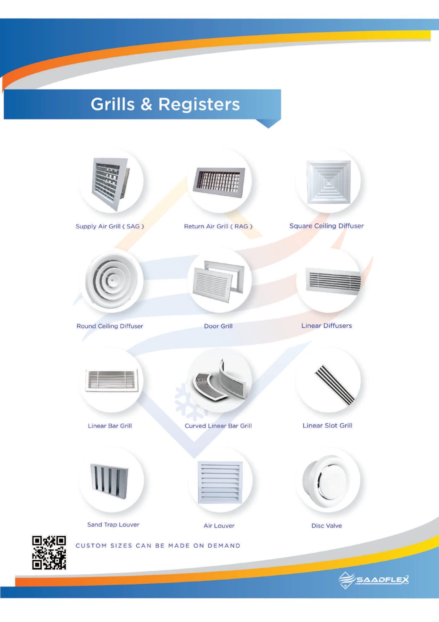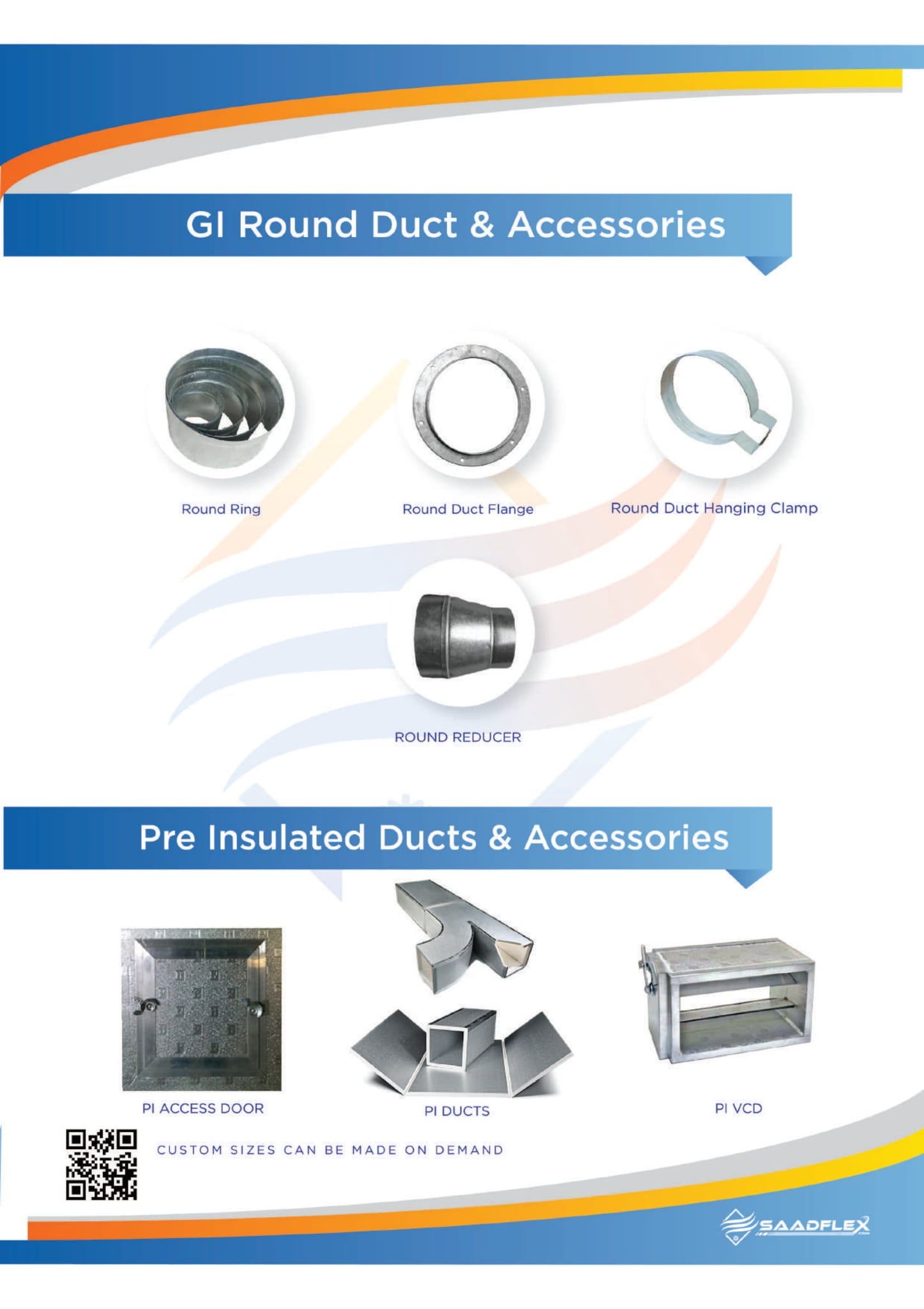 DUCTS, FLEXIBLE DUCTS, PREINSULATED DUCTS AND SHEETS, ROUND AND SQUARE DUCTS, G.I ROUND DUCTS, GRILLS AND REGISTERS