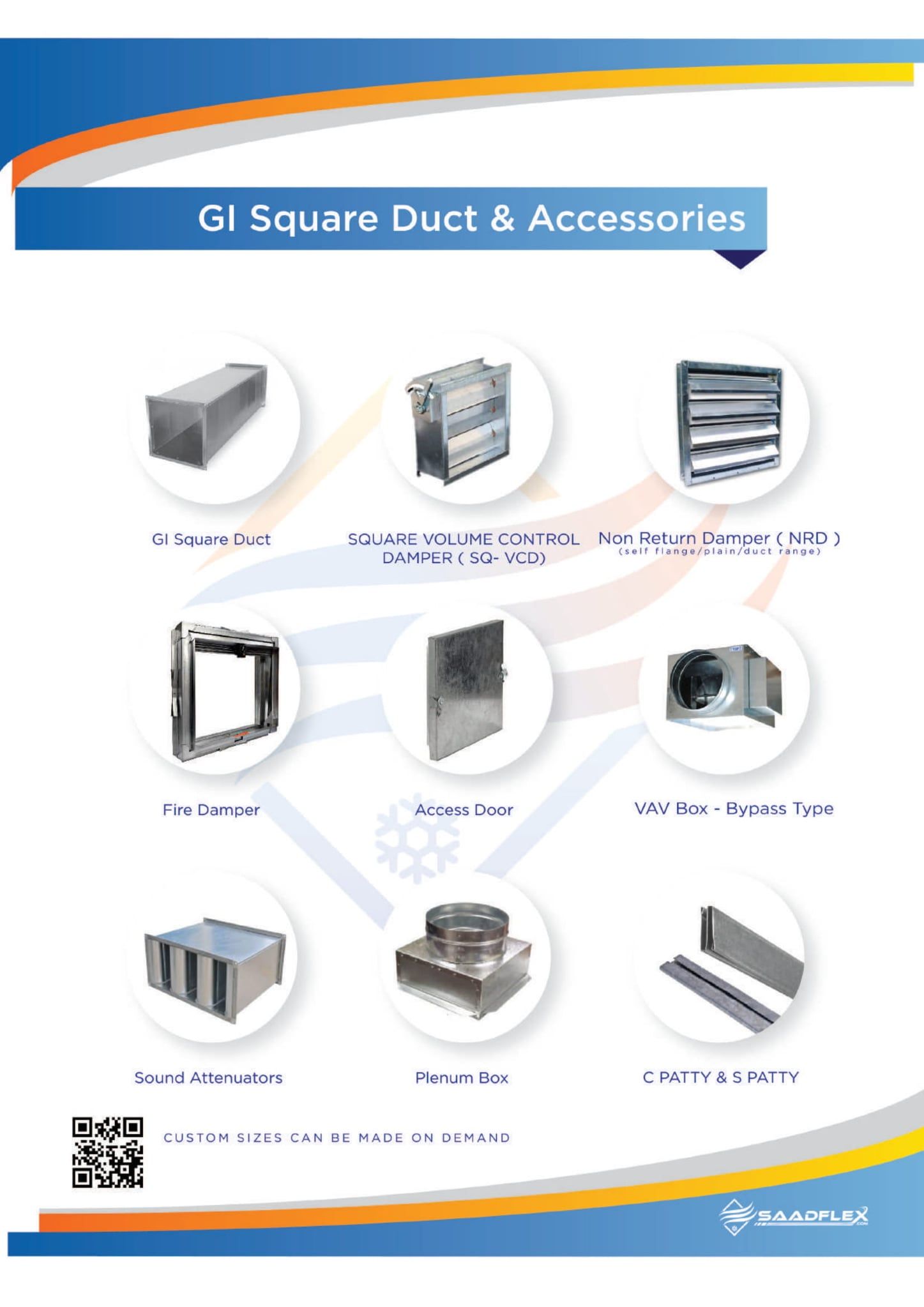 Manufacturers and Supplier of Air Conditioning Duct Accessories, Air Conditioning Ducting Grills And Diffusers, Dampers, HVAC Grillers and Diffusers, Louvers, Volume Control Damper, Access Door, Round VCD, G.I Ring, Fire Damper, VAV Boxes, Sound Attenuator, Splitter Damper, Butterfly Damper, Fresh Air Louver Non Return Damper (NRD), Grills (Liner Bar / Slot Grill), Diffuser (Liner Bar / Slot Diffuser, Exhaust Air Louver (EAL), Aluminum Filters, G.I Ducting, P.I Duct (Pre-Insulated Duct), Plenum Box, C & S Profile, Spiral Duct, Adhesive, Flexible Ducts, Filters, Glues, Tapes, Sealants, Disc Valves