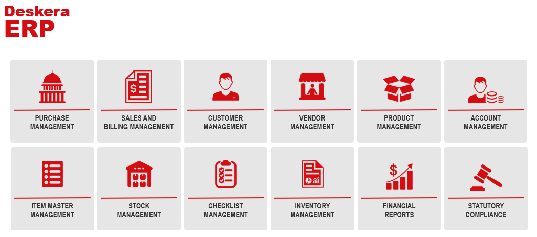 - Deskera ERP (Accounts, Finanace, Inventory management)