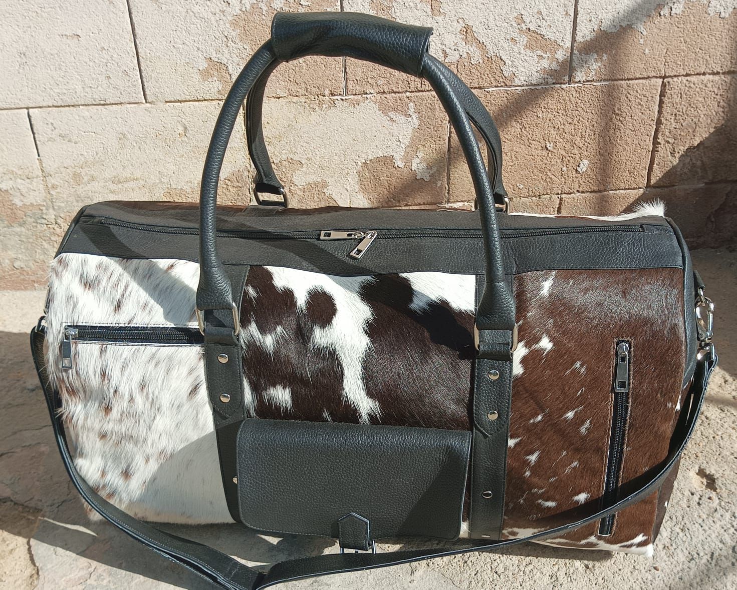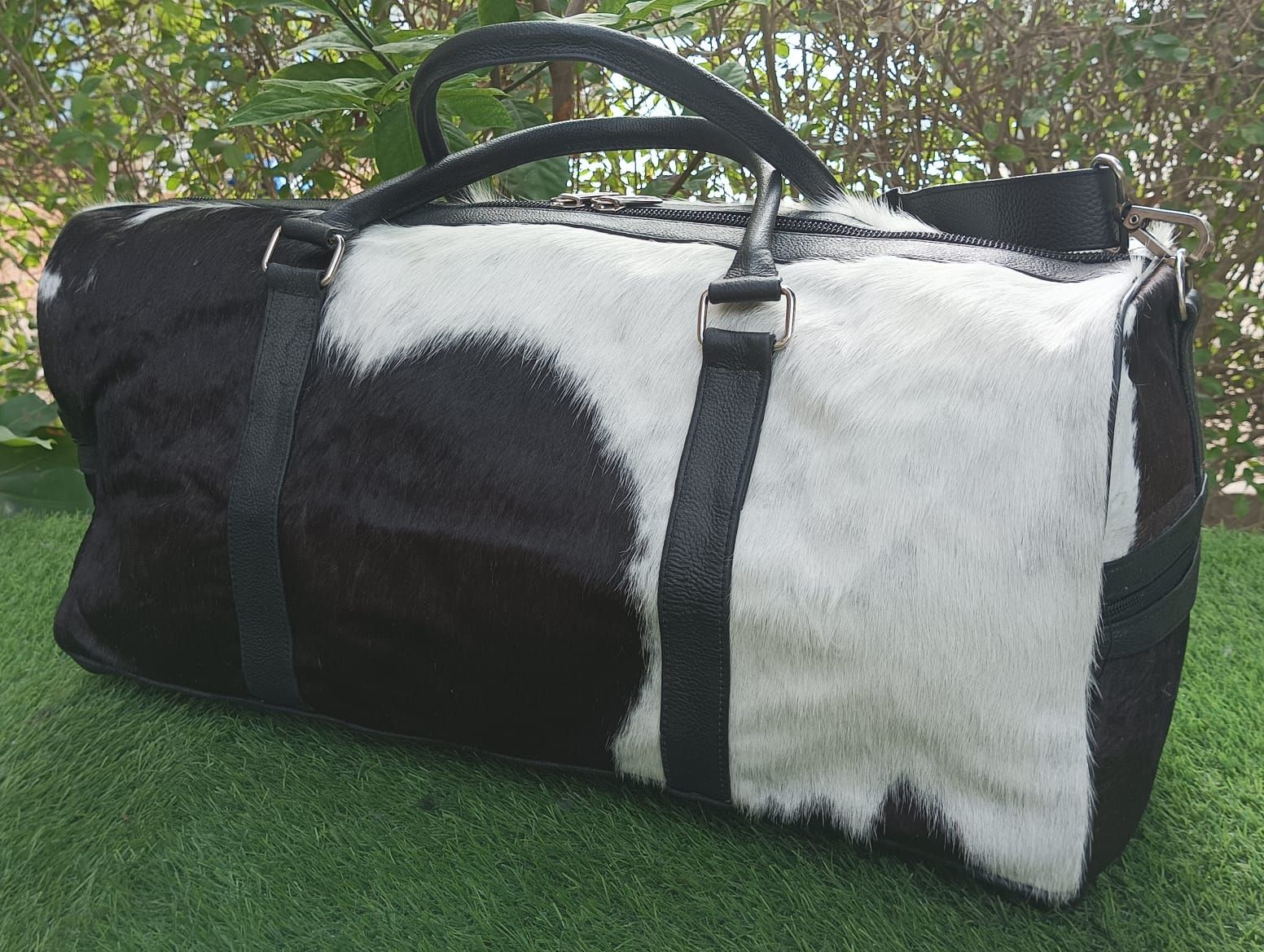 DISCLAIMER: Due to the nature of using an organic material, each bag has a natural variation in print and color, which may differ slightly from the one pictured. Cowhide will be unique as no two hides are alike