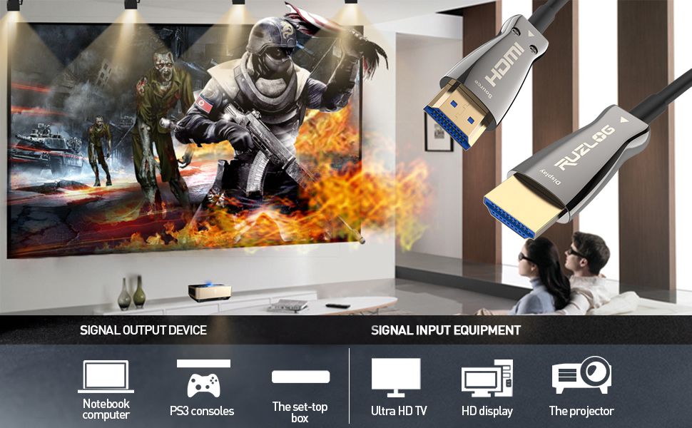 Factory 8K Fiber Optic HDMI 2.1 Cable 50ft 16m/52ft 8K60hz 4K120hz 4K144hz HDCP 2.3 2.2 48Gbps Ultra High Speed Compatible with Apple-TV Dolby Vision Atmos PS5 PS4, Xbox, RTX 3080 3090