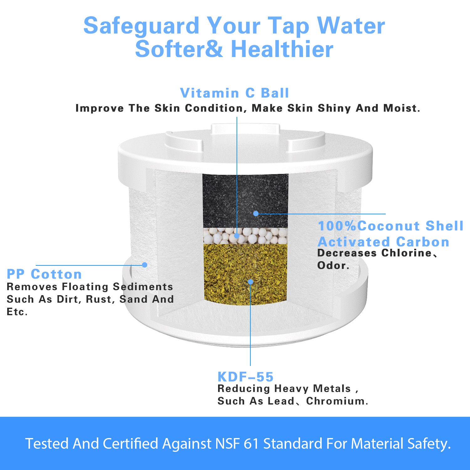 【Premium Care】Tylola Washroom Tap Water Filtration System With Food Grade Vitamin C, KDF55, 100% Coconut Shell Activated Carbon,Premium PP Cotton, Of Which Those Filter Materials Are Tested And Certified Against NSF Which Could Reduce 98% Residual Chlorine, Heavy Metals ,Dirt, Odors In Tap Water. We Provide You With Much Cleaner And Softer Tap Water Filtration To Make Skin SOFTER,Face Smoother, And Refreshes Your Body And Mind Every Day!