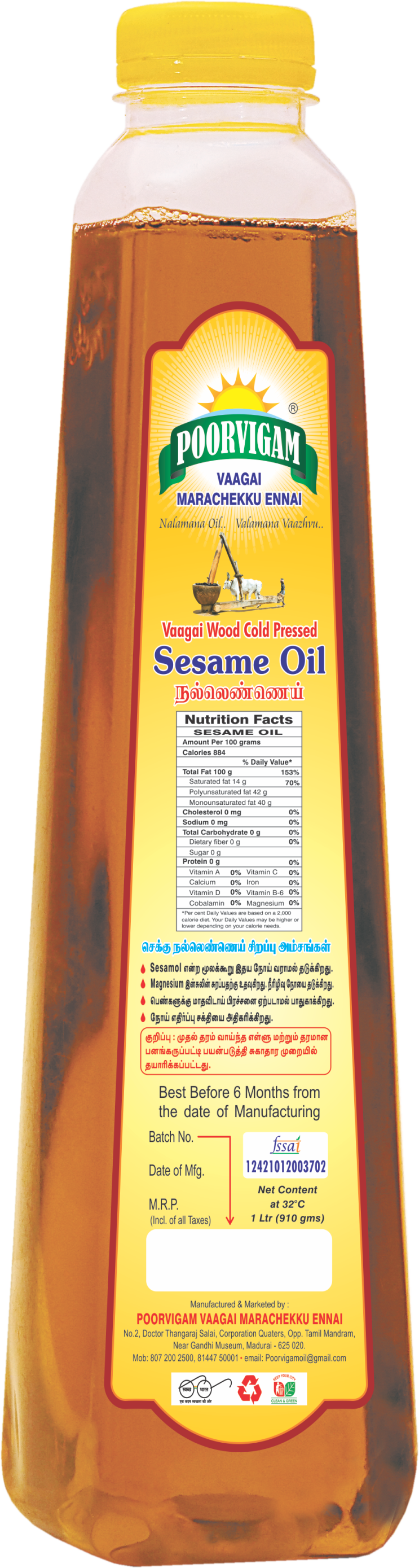 Poorvigam Cold Pressed Sesame Oil (1 LTR)