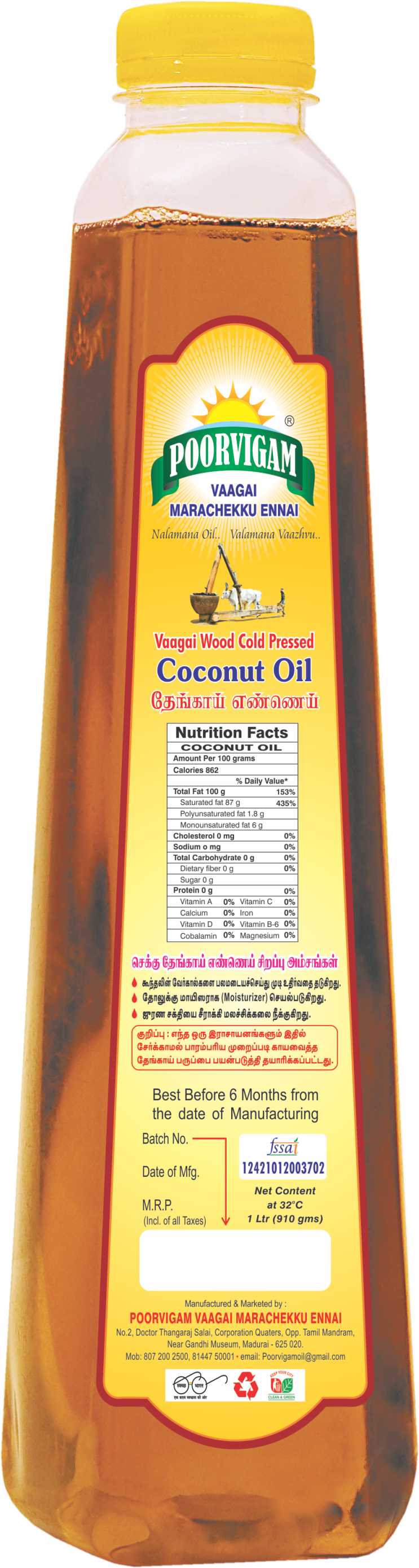 Poorvigam Wood Pressed Coconut Oil (1 LTR)