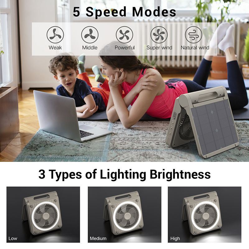 - 3-Gear LED lighting: Not only as a solar rechargeable camping fan, but a LED camp tent light with 3-gear dimming, bringing you safe, clean and handy lighting during camping, nothing hazadous left to the environment.