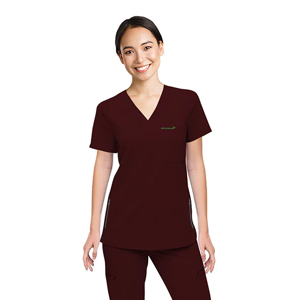 StitchGreen Men's and Women's Burgundy Three Pocket With Zipper Scrub Top Minimum Quantity 50 Pieces.