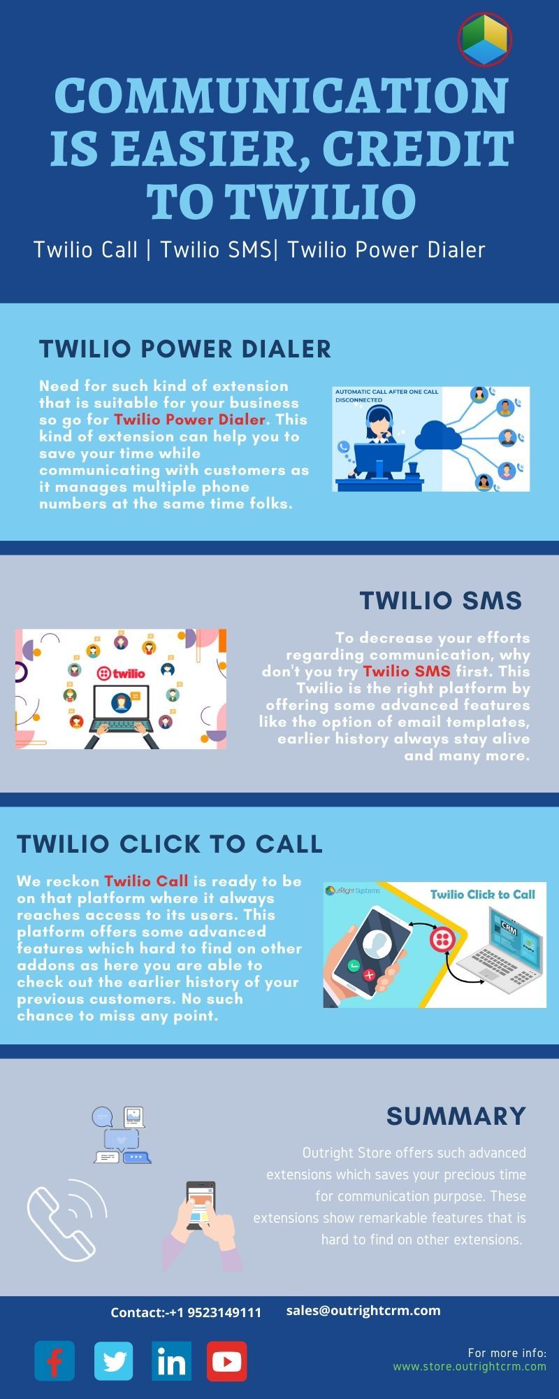 SuiteCRM Twilio Power Dialer provides the “Click to Call” functionality to the CRM users plus admin can manage the multiples phone number. This product allows you to auto-generate Calls and automatically calling them while starting from the list view. This plugin also enabled the facility to make automatic calls one by one by clicking on the number on each detail view.