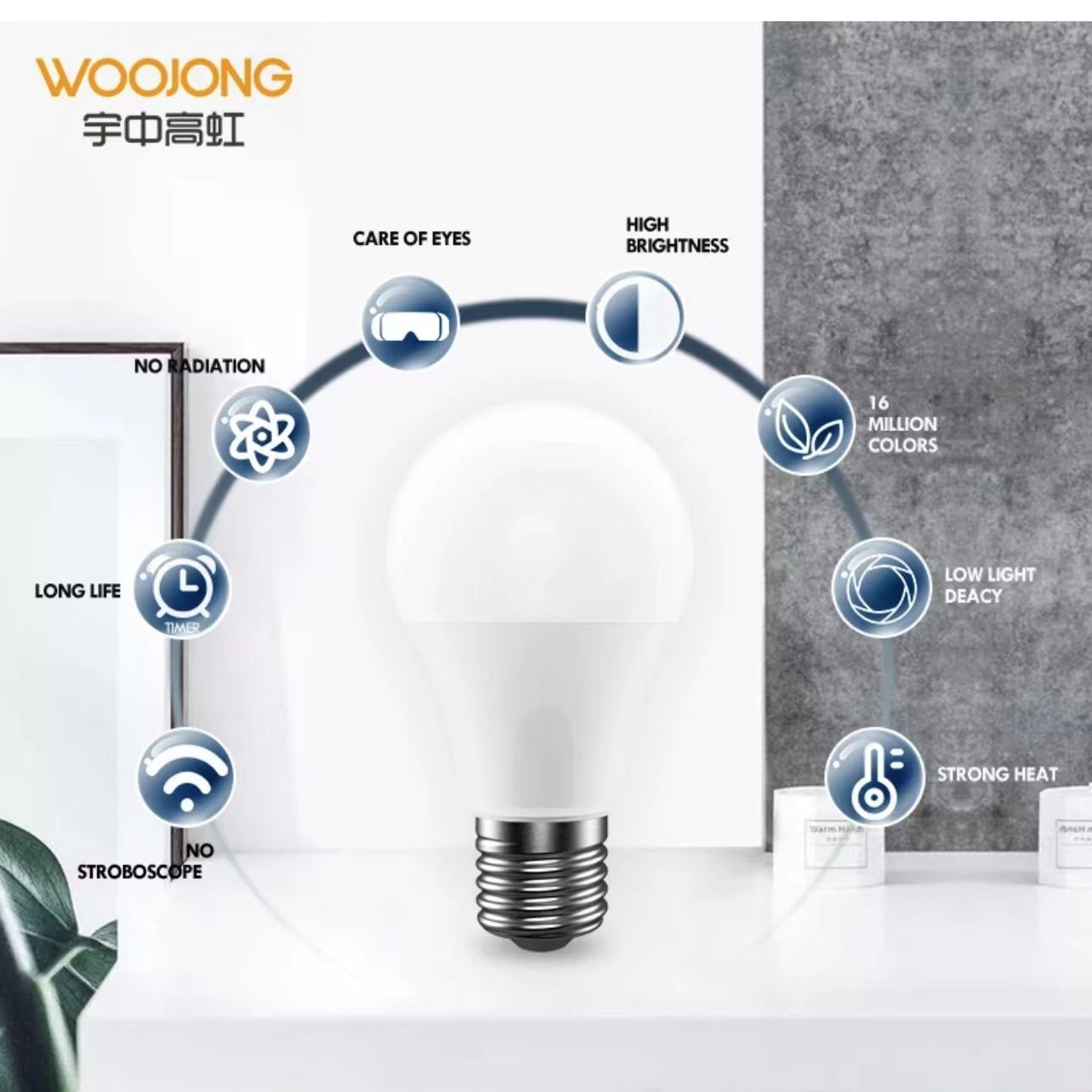 WOOJONG white led lampmanual button residential plastic+aluminum+pc led light bulb