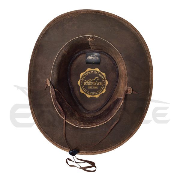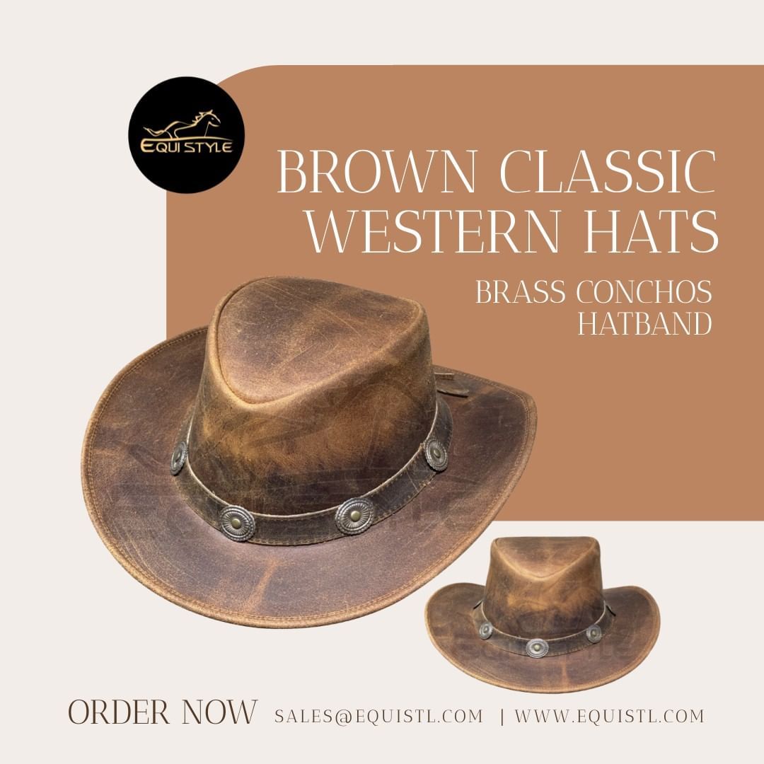 Browse our selection of western hats cowboy style and Australian hats for men and women. This hat has beautiful brass Conchos on a leather hat band. Made from 100% crazy cow distressed leather material. It is shapeable and water-resistant. The durability of the leather makes it a great fabric for keeping warm. You will get many years of use out of a straight-skinned cowboy hat.