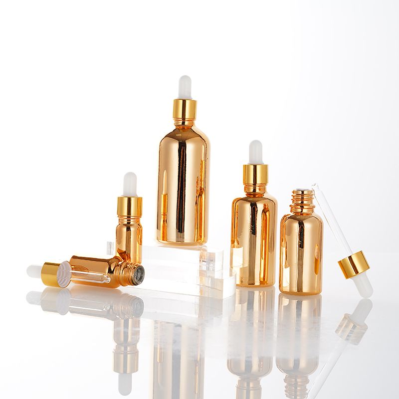 gold color skincare cosmetic glass dropper bottle essential oil bottle with dropper